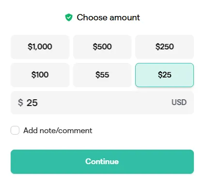 2. Select the amount you’d like to donate and click Continue.