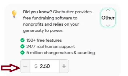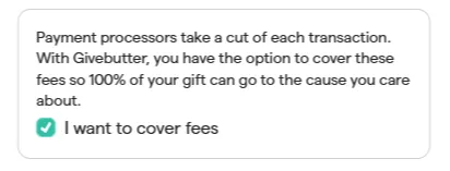 We use Givebutter, an absolutely free donation platform designed for nonprofits. Before you donate, please review the instructions below. There are a couple of quick steps you’ll need to follow to ensure no fees are added to your donation. Because Givebutter is 100% free for nonprofits, we are able to keep every dollar you give without paying any fees — meaning your full donation supports our community.